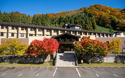 秋田県湯沢市の美人の湯が自慢で四季の樹木が彩る温泉宿泊施設。